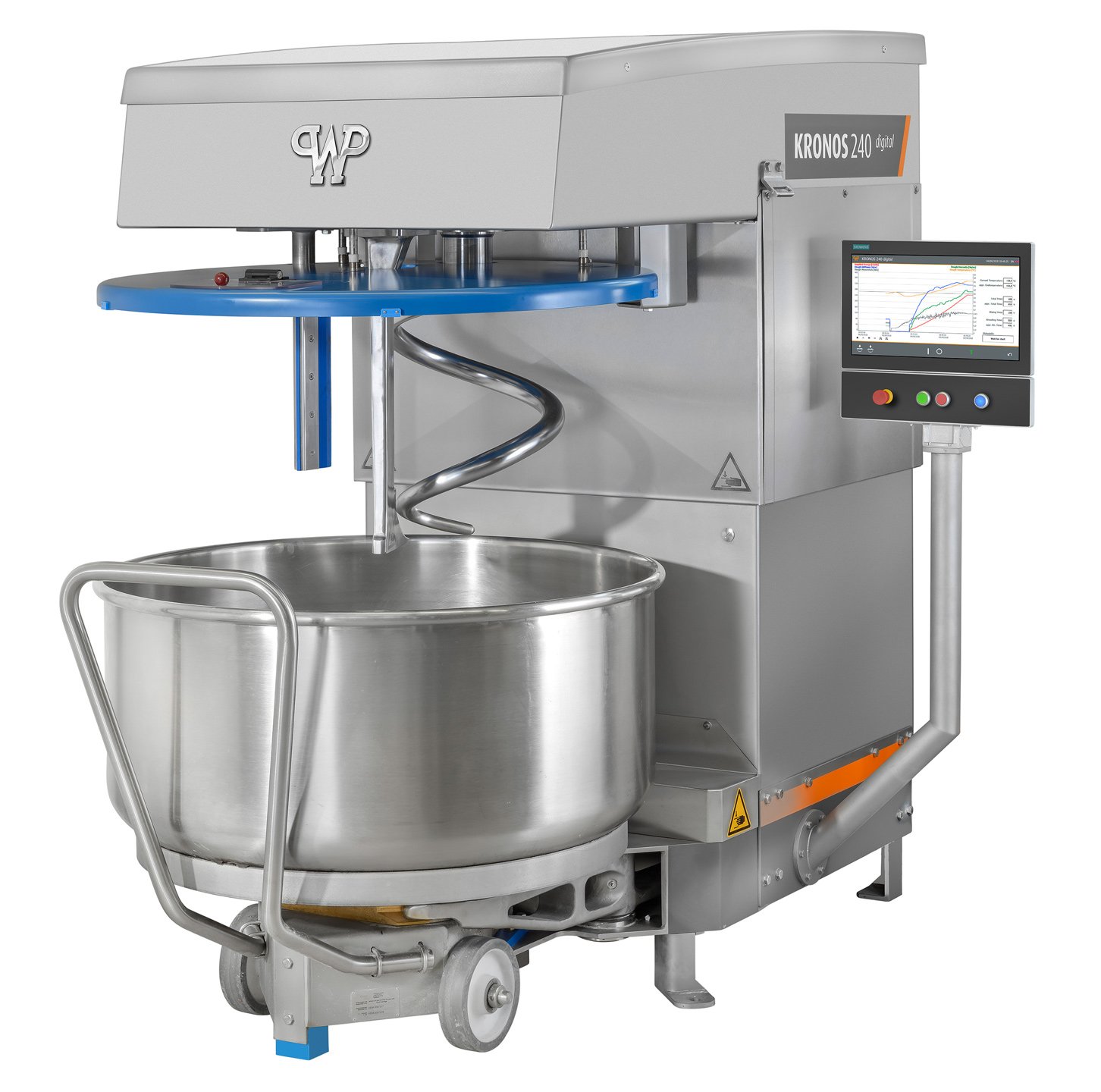 The KRONOS digital develops a feeling for the dough. Its implanted expert knowledge bank is based on extensive experience. It knows when to end the mixing process and always delivers identical, completely reproducible dough qualities - independently of staff training and experience. It is also extremely easy to operate. The KRONOS digital performs all tasks as soon as it is given the signal to start.